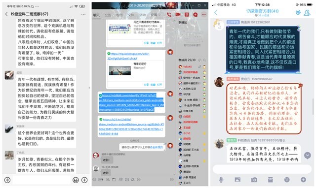 本科生朝气蓬勃,研究生同样风华正茂。公司2019级研究生班班长周旭阳谈到,“今年面对突如其来的新冠肺炎疫情,曾经饱受质疑的青年同胞们积极响应党的号召,踊跃投身疫情防控,不畏艰险、冲锋在前、真情奉献,展现了当代中国青年的担当精神。在这个我们青年的节日里总书记也发来了诚挚的问候,他强调新时代中国青年要继承和发扬五四精神,坚定理想信念,站稳人民立场,练就过硬本领,投身强国伟业,始终保持艰苦奋斗的前进姿态,同亿万人民一道,在实现中华民族伟大复兴中国梦的新长征路上奋勇搏击。”