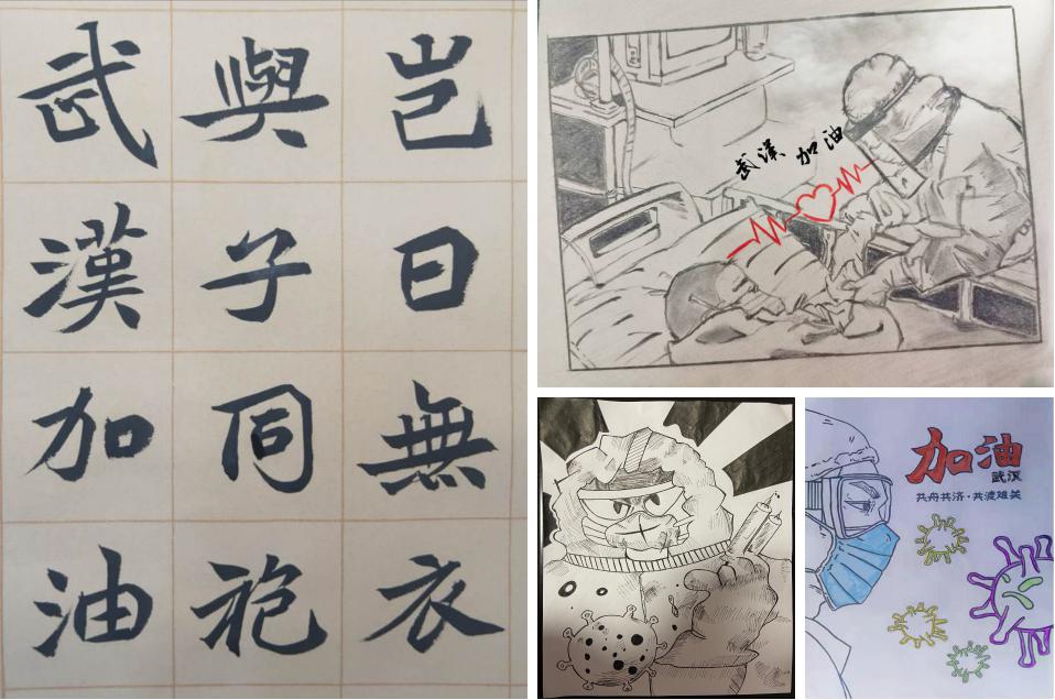 公司号召员工在学习之余通过网络关注疫情防控阻击战中出现的感人事迹和动人画面,并鼓励员工积极创作网文、诗歌、漫画、微视频等各类原创作品,积极在网络发声,弘扬青春正能量。公司2018级员工王一鸣结合个人所思所想,创作了一份朗诵词,词中写道“我们看见无数的人们,却只看见同一个愿望,这个愿望是要灾难快快过去,是要每个人都扛起自己的一份责任,一种担当。”公司2019级员工冯国翊在原创网文中提到“作为一名西电学子,我或许不能奔赴前线救死扶伤,也没有足够的力量去添砖加瓦,但我们用着我们自己的方式为武汉加油,为抗疫做出自己的贡献。就算这个寒假只能在家里守望,我们依然保持着乐观的心态,相信一起都会好起来,疫情终将会被战胜。”公司191601班和191602班录制了微视频,为武汉加油,为中国加油。网文、漫画、书法、诗歌,形式各有不同,但相同的是空间学子助力疫情防控阻击战的拳拳之心。