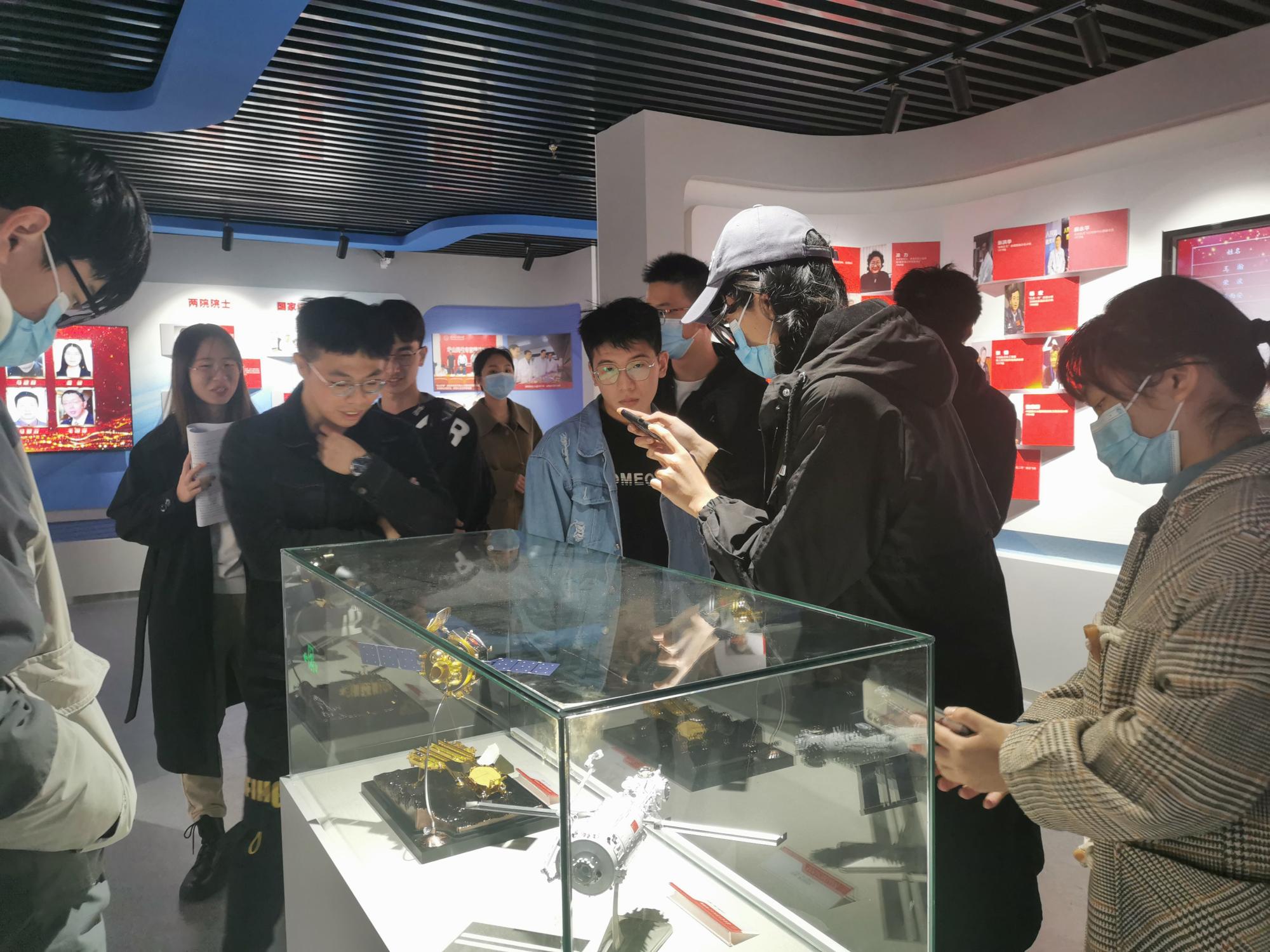 展馆内一张张充满故事的老照片,一封封泛黄的稿件证书以及承载着历代西电人辉煌成就的刊物与书籍都在向我们诉说着公司丰厚的历史底蕴,以及不忘初心、砥砺前行的优秀品质。同学们纷纷拍照留念,将这辉煌校史铭记于心,展望未来更加美好的新时代。参观过程中同学们对中国“天眼”FAST射电望远镜反射单元模型等展品产生了浓厚的兴趣,积极地和展品近距离接触,深切感受电子信息科技的魅力,以及视觉冲击带来的心灵震撼。